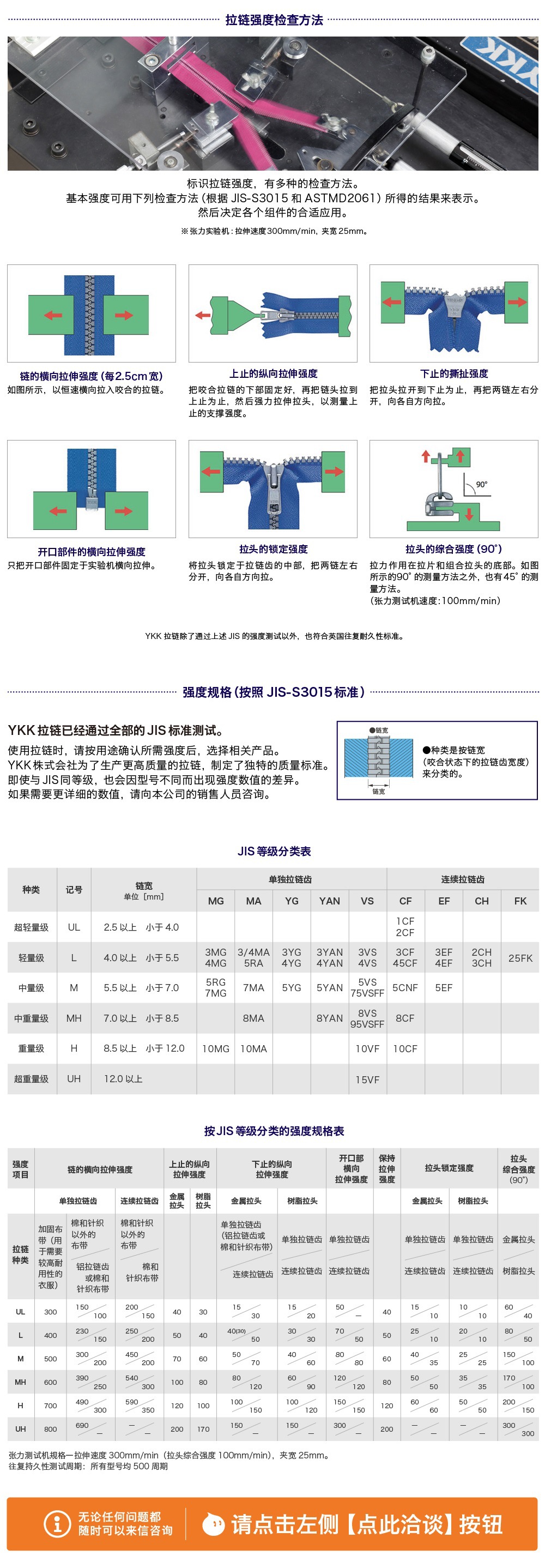 YKK拉鏈強度監(jiān)測方法和詳細數(shù)據(jù)